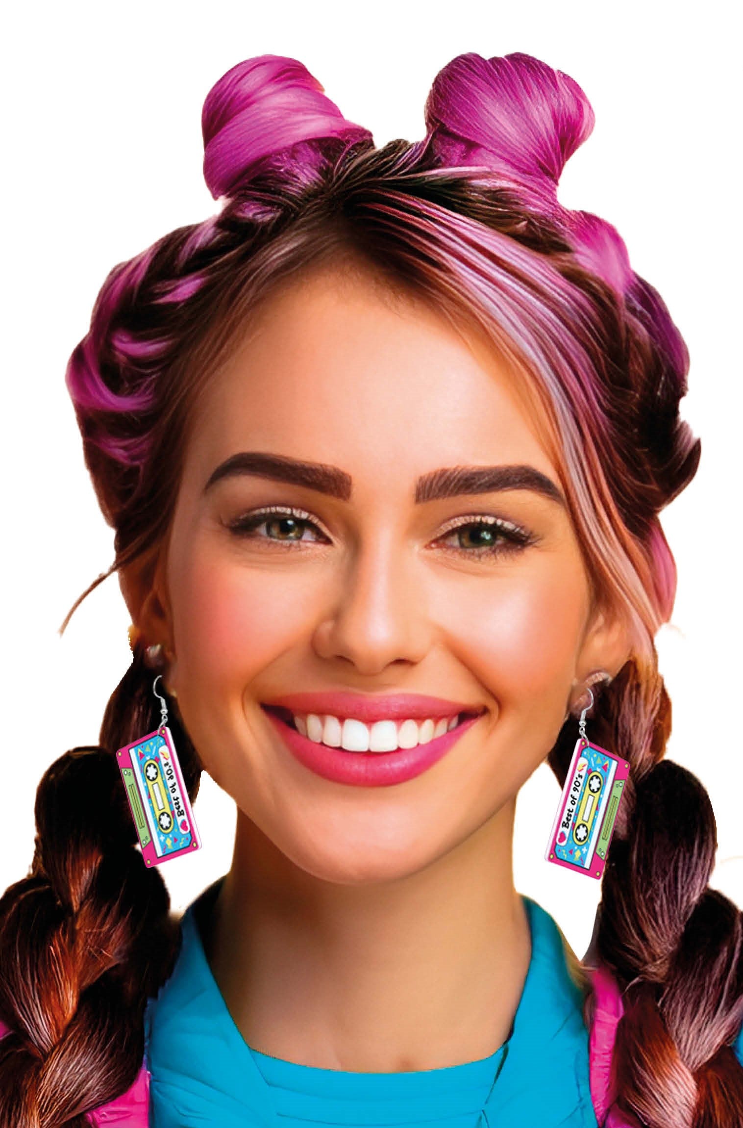 Brincos dos Anos 80 de Rombos Pretos e Rosa Neon