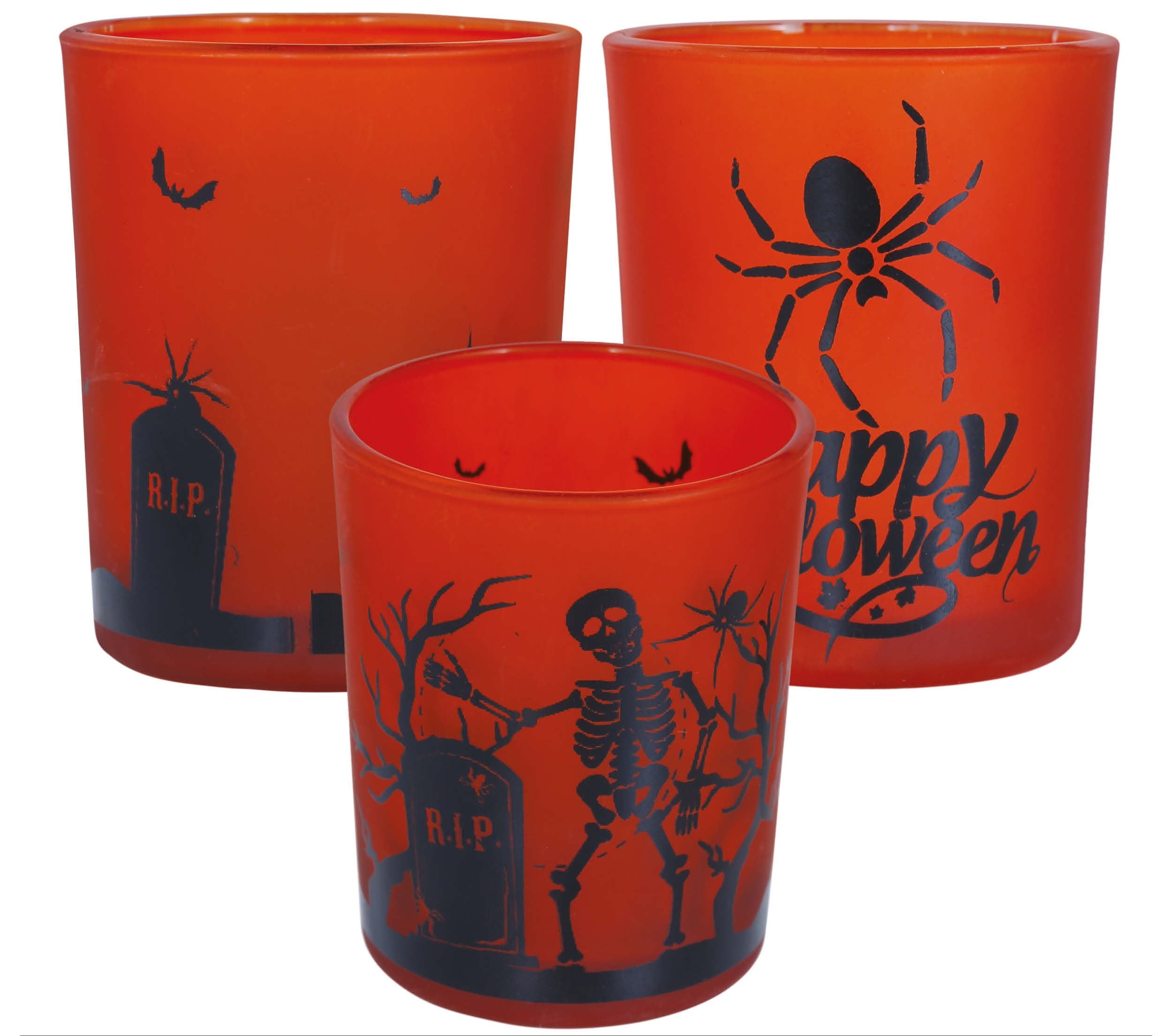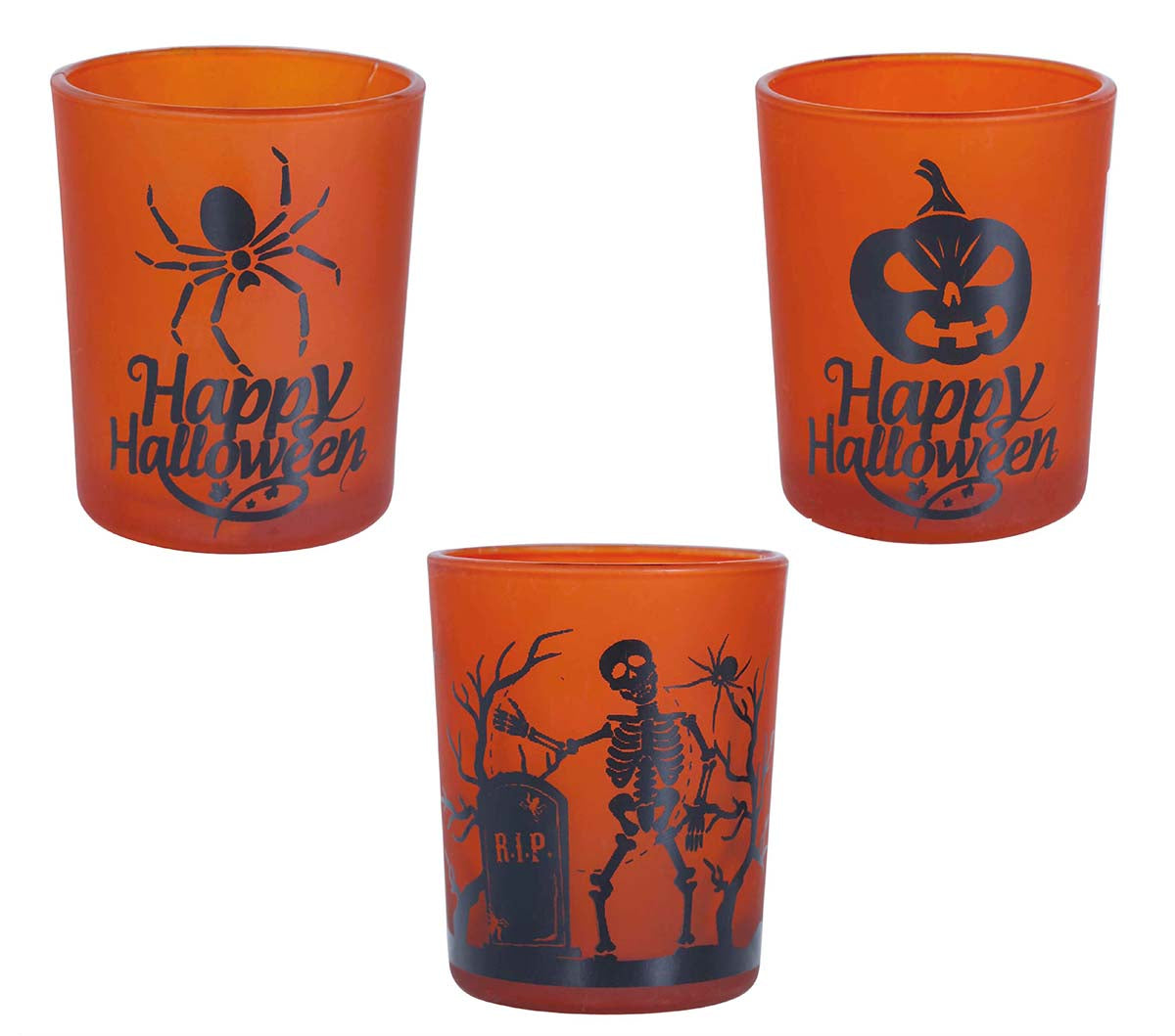 Pack de 3 Copos de Halloween Laranja de Cristal
