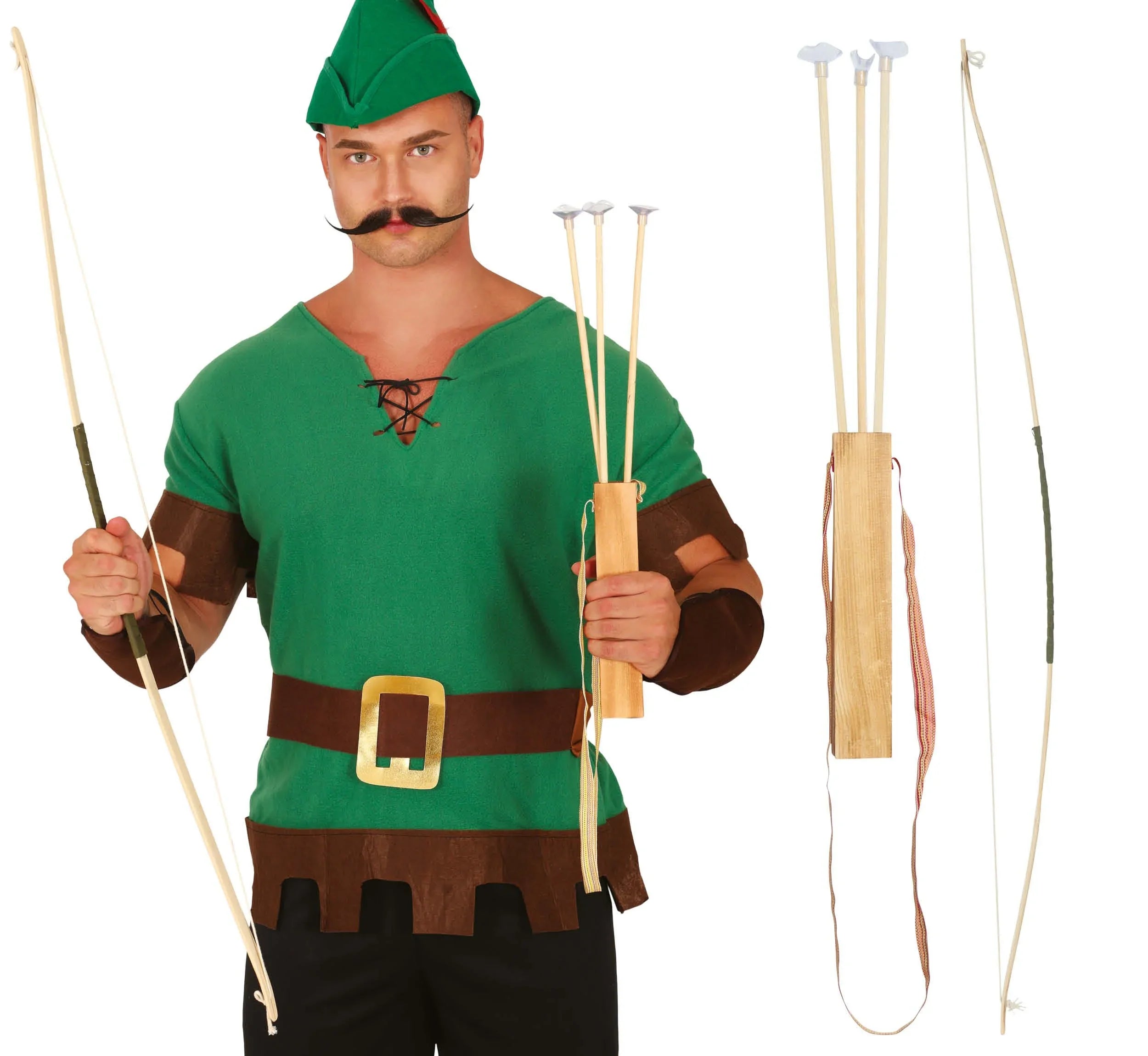¿Vas  a disfrazarte de arquero y aún no tienes tu arco de madera? Con el arco de madera de un metro de largo con tres flechas tendrás el complemento perfecto para tu disfraz de arquero o de Robin Wood.