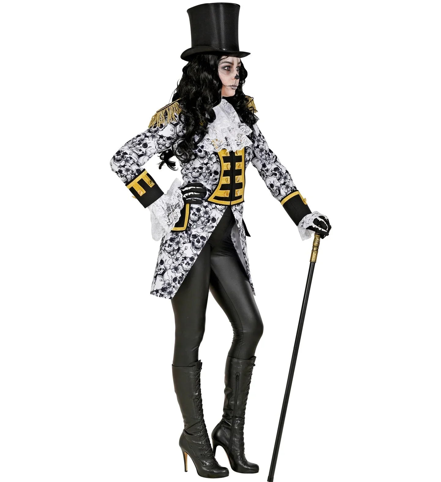 ¿Buscas la chaqueta más elegante y aterradora para tu fiesta de disfraces? Este modelo para adulto en colores blanco y negro con estampado de calaveras y flores hará que te conviertas en ese personaje tétrico que estabas buscando de la forma más versátil y original.