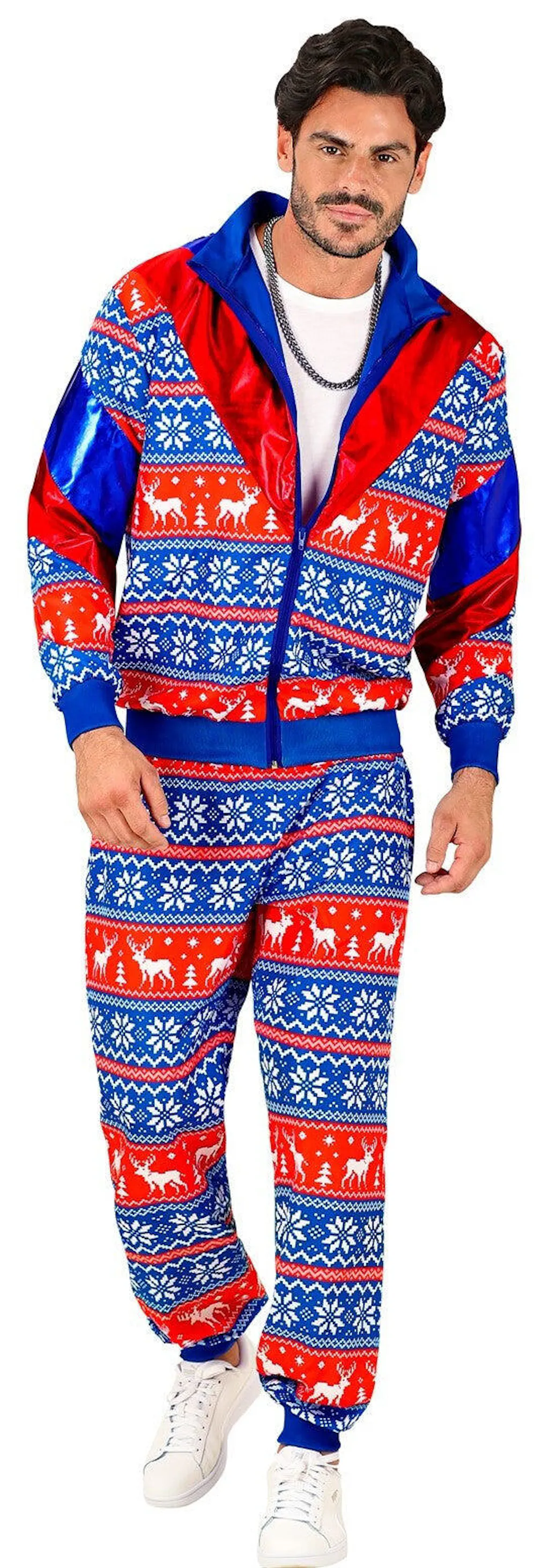 Disfraz Chándal con Estampado de Navidad Azul para Adulto Chándales de Táctel Años 80 Widmann