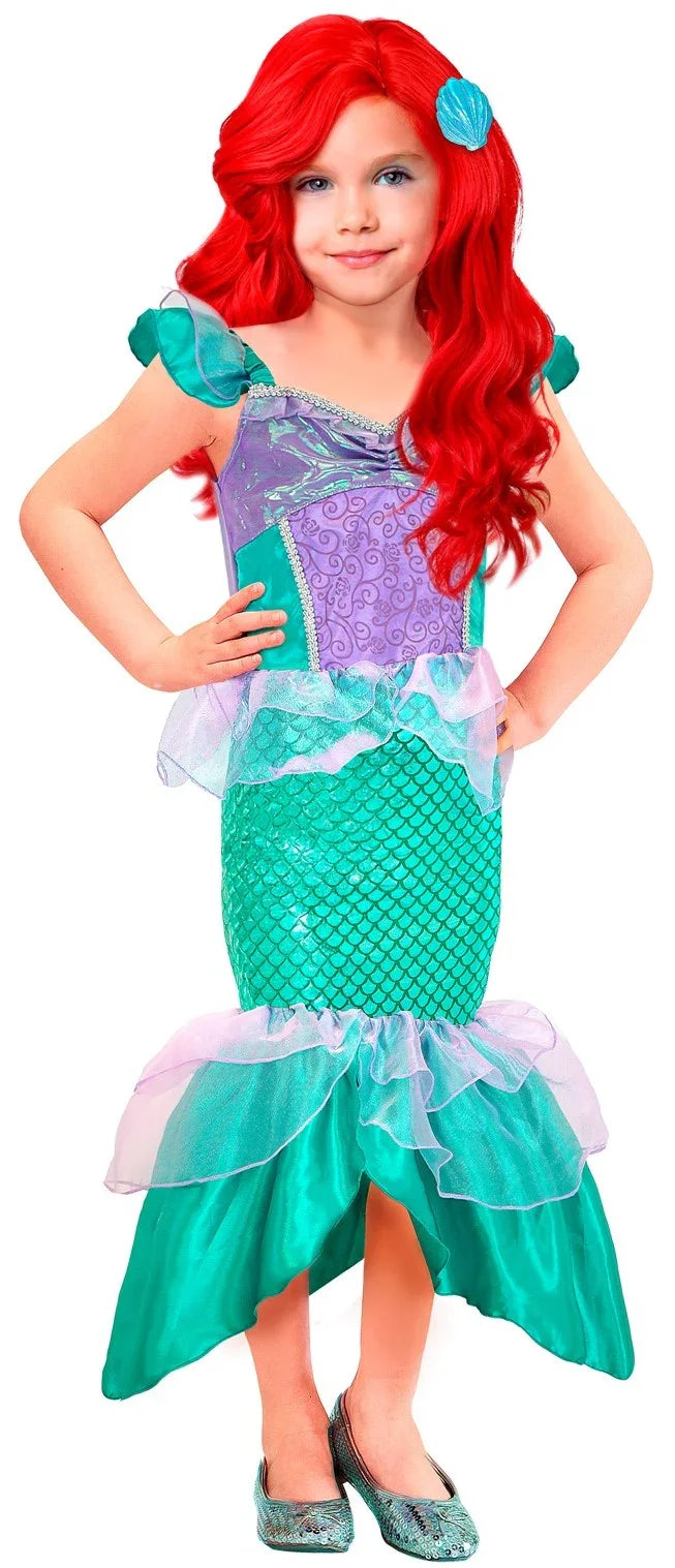 ¿Estás buscando un disfraz de Ariel para tu hija? Con el disfraz de sirenita infantil en color morado y turquesa tendrás el vestido perfecto para disfrazar a tu hija como estos seres de la mitología griega con cola de pez en lugar de piernas famosos por la película "La Sirenita" de Disney y será la niña más guapa de la fiesta de disfraces.
