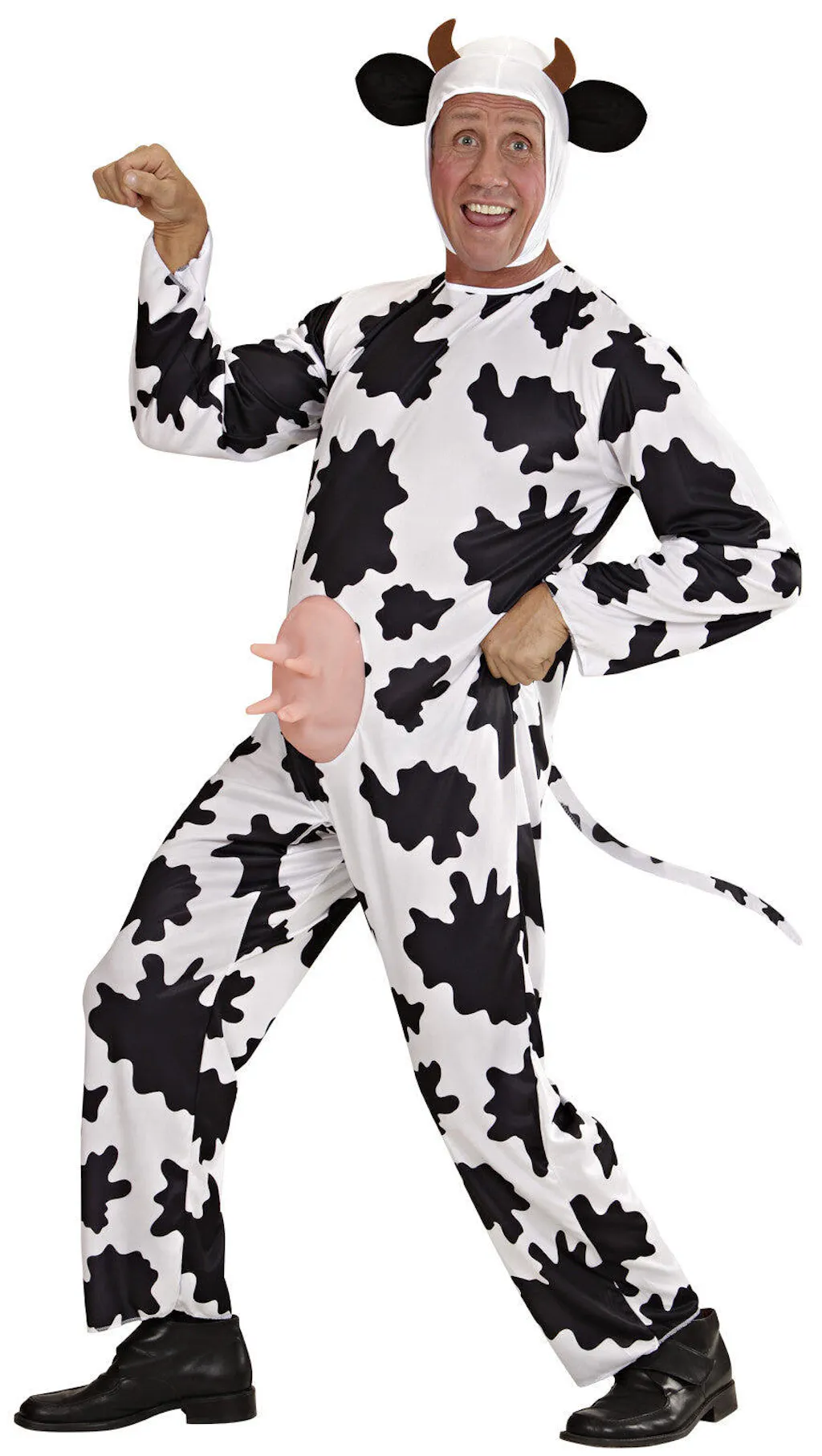 Incluye: Disfraz de cuerpo entero de punto con ubres de goma y rabo. Cubrecabeza con orejas y cuernos. Este modelo es un clasico super divertido. Modelo especial para despedidas de solteros.