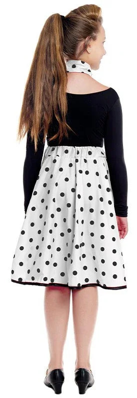 Falda Años 50 Blanca con Lunares Negros Infantil Grease - Años 40 y 50 Partilandia