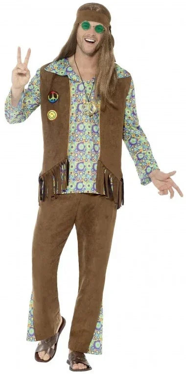 Disfarce de Hippie Psicodélico Castanho para Homem