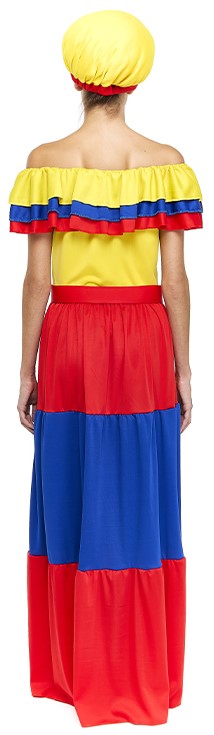 Está à procura de um fato de colombiana para a sua festa? Com o fato de palenquera colombiana para mulher nas cores amarela, vermelha e azul, terá o vestido perfeito para se fantasiar com o traje típico tradicional deste país sul-americano e vai arrasar na sua festa de disfarces.