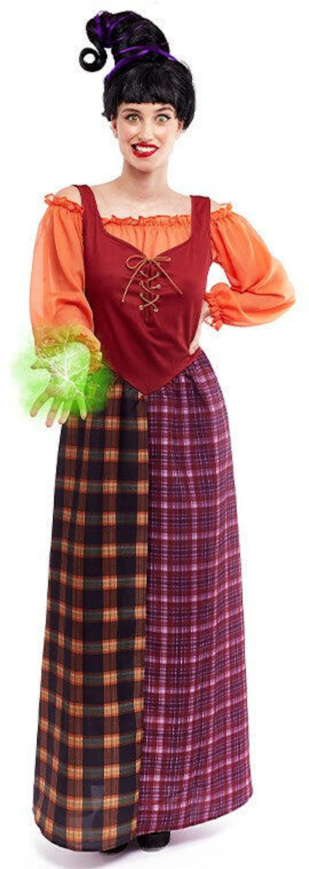 Estás à procura de um fato original para a tua festa de Halloween? Com o fato de bruxa Mary Sanderson para adulto terás um vestido de alta qualidade para te disfarçar como a irmã do meio das três bruxas do filme mítico dos anos 90 "O Retorno das Bruxas" e vais arrasar na tua festa de Halloween.
