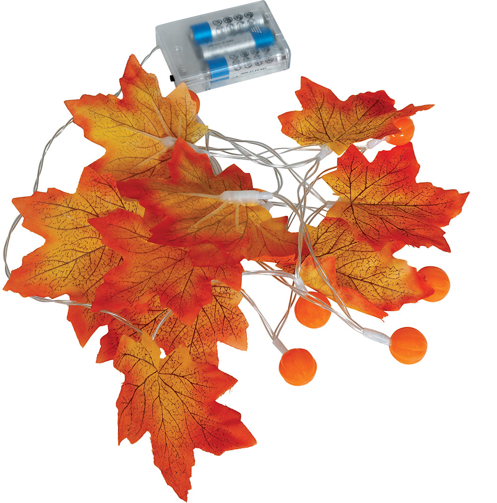 Guirlanda de Halloween com Leds de Folhas de Abóbora
