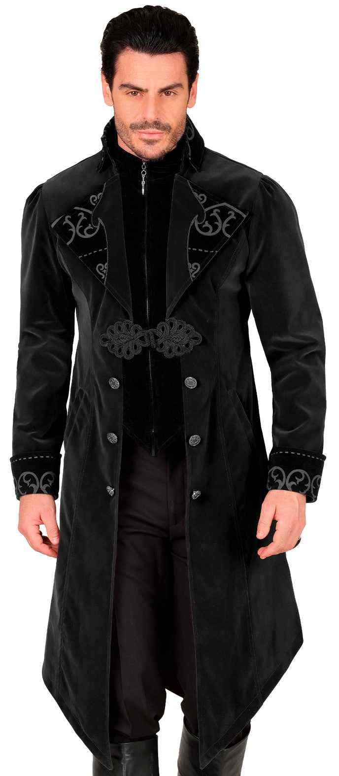 Está à procura de uma jaqueta gótica para o seu fato? Com a jaqueta preta de veludo para homem terá o acessório perfeito para uma grande variedade de fatos, como cavaleiro gótico, steampunk ou vampiro, e vai destacar-se na sua festa de disfarces pela sua grande elegância.